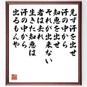 汗の中から知恵を出せ、それが出来ない者は去れ、生きた知恵は汗の中から出るもんや」を書道家が毛筆書道で色紙に直筆、額に入れてお届けします。当店では挑戦、努力、成功、幸福、感謝、成長、家族