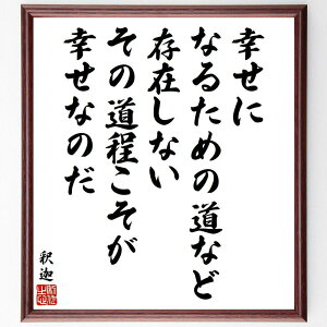 【商品説明】釈迦(ブッダ)の名言「幸せになるための道など存在しない、その道程こそが、幸せなのだ」を書道家が毛筆書道で色紙に直筆、額に入れてお届けします。当店では挑戦、努力、成功、幸福、感謝、成長、家族、仕事、自己啓発