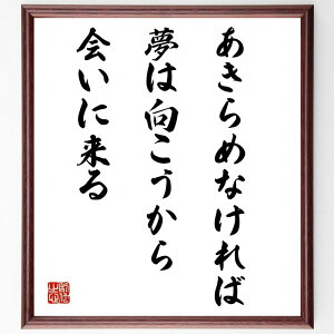 【商品説明】名言「あきらめなければ、夢は向こうから会いに来る」を書道家が毛筆書道で色紙に直筆、額に入れてお届けします。当店では挑戦、努力、成功、幸福、感謝、成長、家族、仕事、自己啓発など様々なテーマから人生の糧となる
