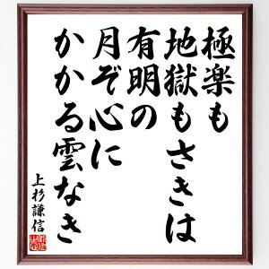 【商品説明】上杉謙信の名言「極楽も、地獄もさきは有明の、月ぞ心にかかる雲なき」を書道家が毛筆書道で色紙に直筆、額に入れてお届けします。当店では挑戦、努力、成功、幸福、感謝、成長、家族、仕事、自己啓発など様々なテーマか