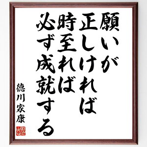 【商品説明】徳川家康の名言「願いが正しければ、時至れば必ず成就する」を書道家が毛筆書道で色紙に直筆、額に入れてお届けします。当店では挑戦、努力、成功、幸福、感謝、成長、家族、仕事、自己啓発など様々なテーマから人生の糧