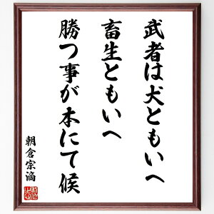 【商品説明】朝倉宗滴の名言「武者は犬ともいへ、畜生ともいへ、勝つ事が本にて候」を書道家が毛筆書道で色紙に直筆、額に入れてお届けします。当店では挑戦、努力、成功、幸福、感謝、成長、家族、仕事、自己啓発など様々なテーマか