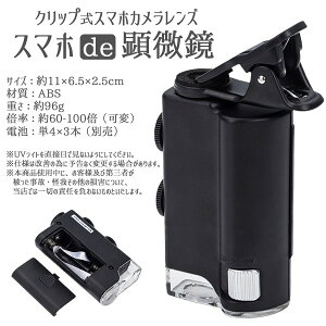 ★送料無料(ゆうメールでの発送となります) ★ あなたのスマホが顕微鏡になる!! スマホのカメラレンズの上に、クリップ式で取り付けることで 最大100倍ズームができる『 スマホ de 顕微鏡 』!! 気軽にミクロの世界を覗いちゃ...