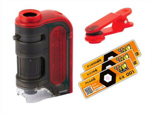 「情報標本」を観て・体感して・学べるコンパクトな顕微鏡。知的好奇心を刺激する新コンテンツ。 カラーレッド 本体サイズ幅60×高さ92×奥行30mm 付属品ハンドストラップ、スマホアダプター、ミクロ体観...