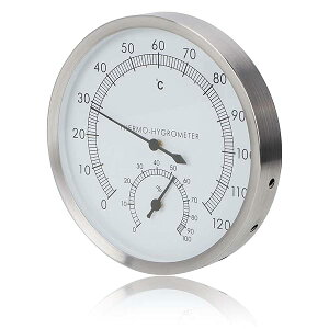 【送料無料】温湿度計 アナログ 壁掛け式 湿度計 温度計 電池不要 お風呂/温泉/サウナ 耐熱 耐湿 吊り下げ 小型 湿度温度計 ステンレス製 見やすい 室内/室外用 12.5x12.5x2.1cmブ...
