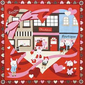 ※この風呂敷は、刺繍名入れのみ対応可能です。刺繍名入れを御希望の場合は、風呂敷と組み合わせて、買い物かごに入れ注文してください。※別ページが開きます バレンタインのタペストリーにピッタリの小風呂敷です。うさぎ達がバレン