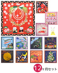 和柄シャンタンチーフ 12ヶ月セットのご紹介です。 1月から12月までの四季折々の可愛らしい柄のはんかちのセットです。 お弁当包みや、海外へのお土産、タペストリーとしてもお薦めです。 サイズ:約50×50cm...