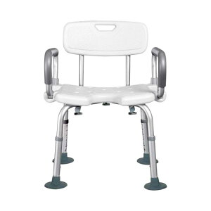 ユニプラス ミドルシャワーチェアの仕様 ●サイズ/幅45.5×奥行48〜50×高さ64〜73.5cm、折りたたみ時:奥行22×高さ79.5cm、座面:幅40×奥行32.5cm、座面高:36〜46cm(6段階/2cm)、ひじ掛け内寸:...