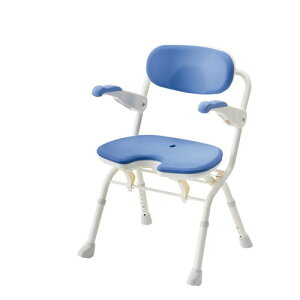 ●押して開く、引いてたためる、開閉アシスト機能で「一人で入浴できる」をサポートします。●背もたれソフトパッドの上下反転が可能で、角度調整が簡単です。●肘掛可動●色:ブルー●材質:座面・背もたれ/PE、グリップ/エラスト
