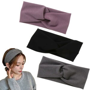 【レディースヘッドバンド】ヘアバンド レディース3点セット、長さと幅は約25cm、フリーサイズ、グレー+パープル+ブラック、このヘッドスカーフレディースファッションヘッドバンドは伸縮性と通気性に優れ、優れた保護効果と装飾効果があります...