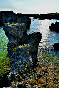 【沖永良部島】 隆起サンゴ礁の島で、四季を通じて暖かく、熱帯・亜熱帯の花が咲いています。 東洋一の鍾乳洞・昇竜洞のほかに200〜300もの大鍾乳洞群があることから、「花と鍾乳洞の島」ともいわれています。 【ウジジ浜公園】 長い歳月
