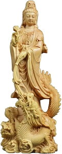 創業祭!即納!龍の上に立つ観音菩薩像 観音慈悲の女神 東洋風水彫刻 ツゲの手彫り仏像装飾 コレクション ギフト アート工芸 贈り物 輸入品 ---------------------- Quan Yin...