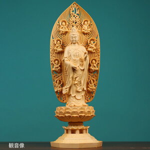 透かし背景 数珠 観音像 観音菩薩 立像 木彫り 仏像 置物 仏壇仏像 高級天然ツゲ木彫り 透かし彫り唐草光背 風水 置物 製品材質:ツゲ(別名:イヌゴマ) 本体 縦約23cm 横約7cm 重さ約270g...