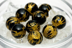 オニキス 彫刻ビーズ 風水 四神獣 青龍 金彫り 一粒売り 10mm 天然石 パワーストーン 判断力アップ 成功 邪念を祓う 忍耐力