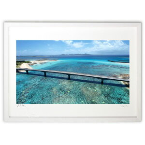 【作家からの作品説明】青の中に1本沖縄の島々でも最北端にある伊平屋島と野甫島を結ぶ橋。島尻郡伊平屋村の伊平屋島と野甫島の間に架かる沖縄県道179号田名野甫線の橋長320 m現在の橋は2代目です。細長い形をした島には、素朴な自然と変