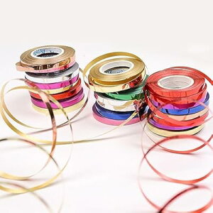 サイズ:幅5mm、長さ10m/巻き セット内容:10巻セット(シルバー*5、ゴールド*5。計100m) 素材:プラスチック 結婚式、誕生日、パーティーなどの特別の日に、飾り付け用に最適なリボンです。 バルーン用だけではなく、プレゼント...