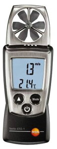 φ30mmベーン付き風速計●風速と気体温度の測定●ポイント平均機能、最大値/最小値表示機能、ホールド機能●体感温度とビューフォート風力階級の演算 testo 410-1は風速と温度を測定するベーン式風速計で