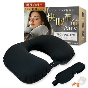 n掲載x医師監修】ネックピロー コンパクト 日本企業企画【フィット感無段階調整】 軽量 飛行機 車 新幹線 首枕 携帯枕 快眠革命Airy LASSE MOA (ブラック)?畳むと片手サイズに収まるほどコンパクトに...