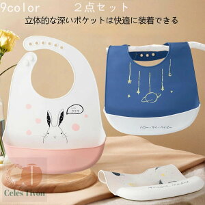 2枚組 スタイ シリコン お食事エプロン プレゼント 6ヶ月〜5歳まで よだれかけ かわいい 可愛い 洗える ソフト 柔らかい 軽量 離乳食お食事 エプロン 防水 ポケット付きオシャレ 離乳食