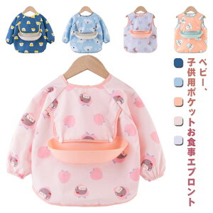 ベビー、子供用ポケットお食事エプロント紐+マジックテープ仕様で、着替えが便利防水加工で、汚れもにじみにくい素材取り外し可能シリコンポケット付きゴム入り袖口なので汚れ物入りにくい サイズ 90cm 100cm 110cm サイズについて...