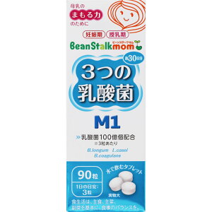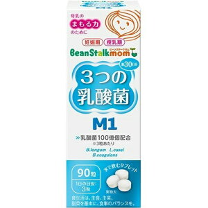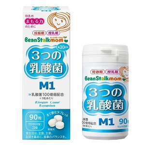 商品名 ビーンスタークマム 3つの乳酸菌M1 規格 90粒(22.5g)(約30日分) 剤型 噛まずに水で飲み込むタイプ(スワロータイプ)です 特徴 ●水で飲み込むタイプです。 ●一日3粒で3種の乳酸...