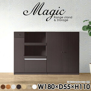 magic レンジ台×収納庫 W180×D55×H110 木目サイズサイズ:約幅1800 奥行き550 高さ1100 mm材質[天板・スライド棚]メラミン樹脂化粧合板[前板]ブラウン・ダークブラウン・...