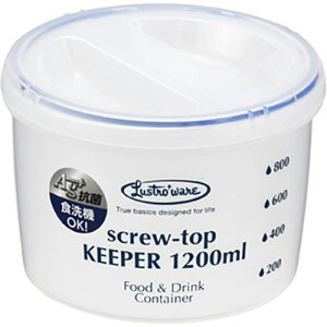 抗菌スクリュートップキーパー1200浅型〇筒型のポリプロピレン製シリコーンパッキン付ネジ式密封容器です。〇めやすとなる目盛印刷付き。〇1/6回転(60度)でクイック開閉できる構造。〇同形状は3サイズ入れ子になる省スペース設計...