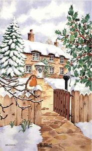 ティータオル 100%コットン Coming Home For Christmas TT686C 美しい声でクリスマスを告げに来る小鳥ロビン(ヨーロッパコマドリ)はイギリスで最も愛される小鳥です。 イギリスのクリスマスカードにもロビ...