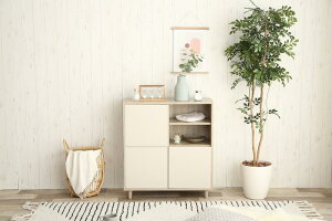 隠す収納、見せる収納を兼ね備えたスクエアキャビネット。 シンプルなデザインでありながら、天然木のような木目柄とホワイトの組み合わせが、ナチュラルでありながらモダンな印象を与えてくれます。 コンパクトながら収納力抜群で、