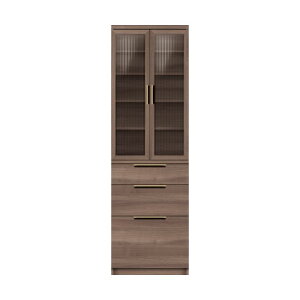 キャビネット カップボード キッチン収納 ガラスキャビネット 同シリーズで組み合わせ自由自在 一人暮らしの部屋や狭いスペースにぴったりサイズ ダークブラウン 木目柄 ベーシックデザイン 幅56.6×奥行29.5×高さ80cm...