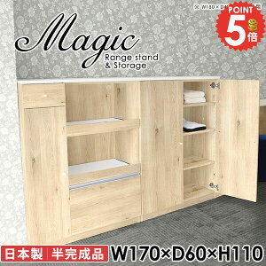 キャビネット 収納 スライドレール式引き出しmagic レンジ台×収納庫 W170×D60×H110 木目サイズサイズ:約幅1700 奥行き600 高さ1100 mm材質[天板・スライド棚]メラミン樹脂化粧合板[前板]ブラウン...