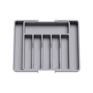 ケース グレー 伸縮式 約W33.5〜57 X D38 X H5 cm 引き出しカトラリー収納ボックス 手入れ簡単 食器トレー 食器棚 キッチン 収納ケース 小物収納 キッチンツール 取り出しやすい (グ...