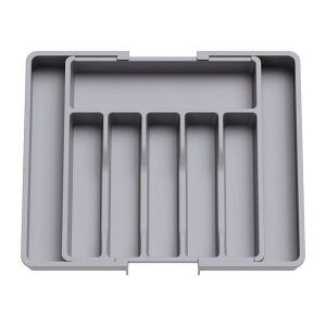 ケース グレー 伸縮式 約W33.5〜57 X D38 X H5 cm 引き出しカトラリー収納ボックス 手入れ簡単 食器トレー 食器棚 キッチン 収納ケース 小物収納 キッチンツール 取り出しや【商品仕様...