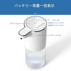 非接触式泡ソープディスペンサー 衛生的設計 非接触式で交差感染防止 4段調整 0.3-2.0秒吐出量調整 USB充電 1500mAh大容量 IPX5防水 水濡れに強い ?衛生的な非接触設計 高感度センサー搭載で直接触れずに使用...