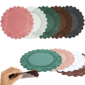 シリコン レース カップ敷きコースター 食器の装飾コースター 径 10cm パーティー ケーキ ドリンク コーヒー ランチョンマットな シリコン製 耐熱 滑り止め コースター 10枚 セット [並行輸入材質...