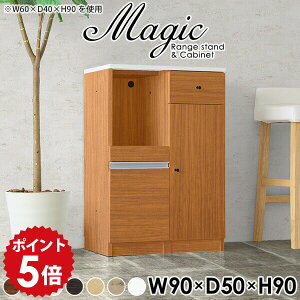 magic レンジ台×キャビネット W90×D50×H90 木目サイズサイズ:約幅900 奥行き500 高さ900 mm材質[天板・スライド棚]メラミン樹脂化粧合板[前板]ブラウン・ダークブラウン・チーク/デルナチュレ化粧合板ホワイト...