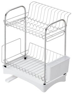 【製品仕様】カラー:ホワイト、ブラックサイズ:42cm*29cm*29cm素材:鉄+PP【特徴】●2段階収納、ご一家の食器に対応できます●厚手素材で、耐久性・安定性を向上させました●仕切り仕様、落ちにくい●水受け便利、いつも清潔な状態でご
