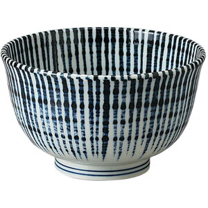 ■日本製 美濃焼(岐阜県土岐市) ■直径16.0cm×高さ8.3cm 満水時900cc ■重さ 380g ■色 白地に紺(青) ■用途 どんぶり/丼 軽量でとても使いやすいどんぶりです。 派手すぎないさりげないうず紋が...