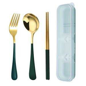 カトラリーセット 箸 フォーク スプーン 3点セット ケース付き 食器セット ステンレス製 携帯便利 学生 大人用 女の子 男の子 通勤 通学 弁当箱用 アウトドア キャンプ用 5色選択可能 (グリーン) ???【弁...