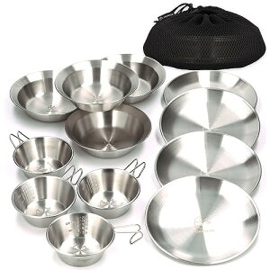 ◆商品名:FOXDOOR アウトドア 食器セット 3枚組セット 4枚組セット シェラカップ コンパクト 収納 ステンレス キャンプ バーベキュー ファミリー (各4点(計12点セット))【セット内容】シエラカップ...