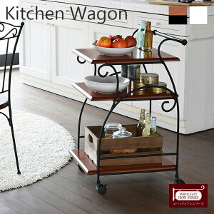 商品説明ダイニングテーブルと揃えてヨーロピアンなお部屋を作る女性らしいアイテム。キャスターにはロックが付いているので、お料理を運ぶとき以外でもキッチンラックとしてご使用いただけます。 商品名ロートアイアン キッチンワゴ