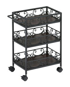 アイアンワゴンS (ブラック) ヨーロッパ調でアンティークな雰囲気のアイアンシリーズ! 『アイアンワゴンS 』は、ロートアイアンワゴン、置くだけでヨーロッパ調のアンティークな雰囲気を演出します。 アイアンの作り出す美しい曲線が