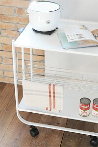 ■商品説明 ダイニングテーブルと揃えてヨーロピアンなお部屋を作る女性らしいアイテム。キャスターにはロックが付いているので、お料理を運ぶとき以外でもキッチンラックとしてご使用いただけます。 ■本体サイズ [外寸]幅41.5×奥行