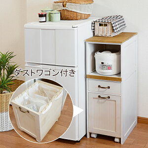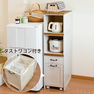 隙間に置ける、スリムサイズのキッチンラック♪炊飯器や電気ケトルをまとめてすっきり!ダストワゴンは収納ワゴンにもなる2WAY仕様。最大25cm引き出せるスライド棚で蒸気の出る炊飯器やケトルなどがスムーズに引き出せ、収納できます。