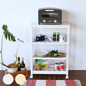 キッチンのすき間収納にもおすすめ。スリムタイプの4段木製ワゴンタイルトップ天板のキャスター付きワゴンです。2枚の棚板は5段階からお好きな高さで固定できます。 収納したいものに応じて位置を変えることで、スペースを無駄なく活用