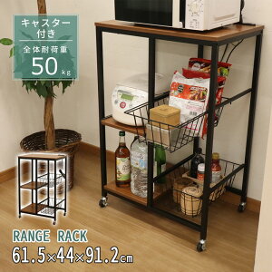 ■商品説明 場所を取らずに使いやすいコンパクトなサイズのレンジラック。 ◆レンジラックの特徴 ・スライド棚と2口コンセントが付いたシンプルなレンジ台ラック。 ・天板下には2段のバスケットと中段にスライド棚が付いています。 ・キ