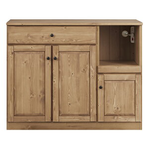アンティーク風の取っ手が印象的なダークブラウン家具コサロシリーズのレンジ台です。スライド棚付きのオープンスペースに引出し、両開き扉の収納スペースが一台に集約されている、収納力抜群の一台です。オープンスペースに調理家電を、引出しにカトラ...