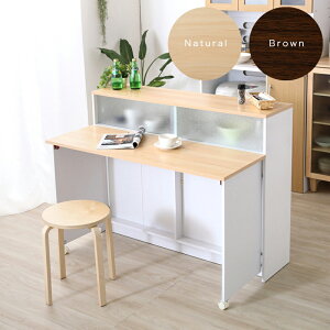 ■商品説明 間仕切りとして使えるキッチンカウンター120幅。サイズは幅120cm、奥行32〜58.5cm、高さ93.5cm。収納されたバタフライ天板を広げれば食事もできるカウンターテーブルに!またバタ...