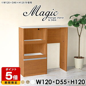magic レンジ台×作業台 W120×D55×H120 木目サイズサイズ:約幅1200 奥行き550 高さ1200 mm材質[天板・スライド棚]メラミン樹脂化粧合板[前板]ブラウン・ダークブラウン・...