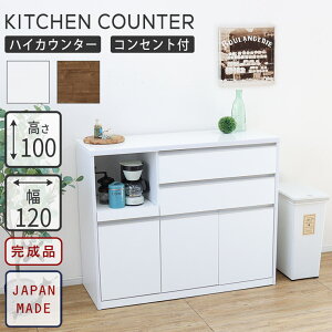 幅120cm キッチンカウンター ハイタイプ 完成品 フライ 日本製 大川家具 サイズ 外寸:幅119.5奥行48.5高さ115cm 左上OP内寸:幅56.4奥行37.5高さ31cm 左下OP内寸:幅...